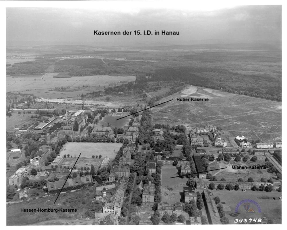 Daten und Fakten über die 15. Infanteriedivision Friedensgarnisonen der 15. InfanteriedivisionStand: Herbst 1937:Die 15. I.D. gehört dem Wehrkreis IX (Kassel) an.Divisionsstab: Frankfurt am MainNachrichtenabteilung 15: Frankfurt am MainPionierbataillon 15: Aschaffenburg, Pionier-Kaserne:Panzerabwehrabteilung 15: Büdingen:Sanitätsabteilung 15: Frankfurt am MainInfanterieregiment 81, I. + II. Bataillon und Regimentsstab: Frankfurt am Main, Kurhessen-Kaserne(III. Bataillon / IR81 wurde erst mit der Mobilmachung 1939 aufgestellt)Infanterieregiment 88, I. Bataillon: Hanau am Main, Hutier-KaserneInfanterieregiment 88, II. Bataillon: Hanau am Main, Hessen-Homburg-KaserneInfanterieregiment 88, 13., 14. Kompanie und Regimentsstab (1939): Hanau am Main, Ulanen-KaserneInfanterieregiment 88, III. Bataillon: Konstantin-Kaserne Fulda (Am Kleegarten, heute Gallasiniring, fertiggestellt 1937)(Dank an Rüdiger für das Foto)Infanterieregiment 106, I. Bataillon: Aschaffenburg, Bois-Brule-Kaserne(II. Bataillon / IR 106 wurde erst mit der Mobilmachung 1939 aufgestellt):Infanterieregiment 106, III. Bataillon: Aschaffenburg, Jäger-Kaserne:Infanterieregiment 106, Regimentsstab, 13. u. 14. Kompanie, Nachrichtenzug, Reiterzug undRegimentsmusik: Aschaffenburg, Lagarde-KaserneDer bisherige Regimentsstab des Artillerieregimentes 15 wurde als Stab des A.R. 9 von Würzburg nach Siegen verlegt. Als Artillerieregiments-Stab der 15. I.D. wurde in Fuldader Regimentsstab 51 (kein Zahlendreher !) aufgestellt. Ihm waren unterstellt:•I. Abteilung / Artillerie-Regiment 15: Würzburg (ab Frühjahr 1939: Aschaffenburg)•II. + III. Abteilung / Art. Regiment 15: Frankfurt am Main (Bonames)•I. + II. Abteilung / Artillerie-Regiment 51: Fulda (Bleidorn-Kaserne)Die Aufklärungsabteilung 15 wurde vom aktiven Kavallerieregiment 3 gebildet;sie wurde der 15. I.D. erst nach der Mobilmachung 1939 am Westwall zugeführt. Das Kavallerieregiment 3 hatte seine Garnison in der Zieten-Kaserne in GöttingenBeobachtungsabteilung 15, Fulda (Ludendorff-Kaserne):Textquelle: [ 1 ]